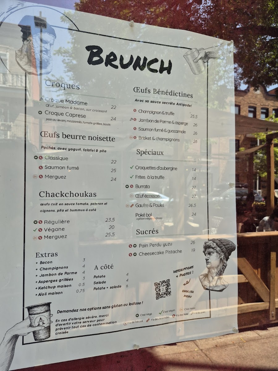 Welcome to Antipode, a culinary gem located at 1602 Laurier Ave E, Montreal. This vibrant restaurant offers an exquisite brunch experience, showcasing a menu filled with creative twists on classic dishes. Delight in the rich flavors of their Eggs Benedict variations, featuring unique combinations like smoked salmon with guacamole and truffle-infused mushrooms.